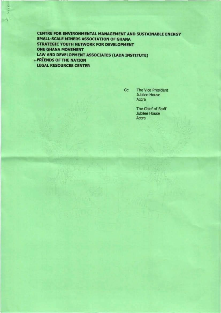 “This engagement aims to provide a platform for frank and constructive dialogue between the Government and civil society on the menace of illegal mining, with a view to harnessing collective expertise, perspectives, and solutions to address this national challenge,” the letter stated.